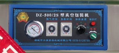 本機具有真空抽氣、封口、印刷產品標簽一次完成功能,真空度由時間電位器設定開關調節(jié),封口溫度分五檔調節(jié),以變壓器加熱電壓的高低來達到不同的封口溫度,熱封時間采用數字顯示時間繼電器來控制,本機采用換字方便、印字清晰的印制產品標簽裝置,以符合國家食品標簽法的規(guī)定。